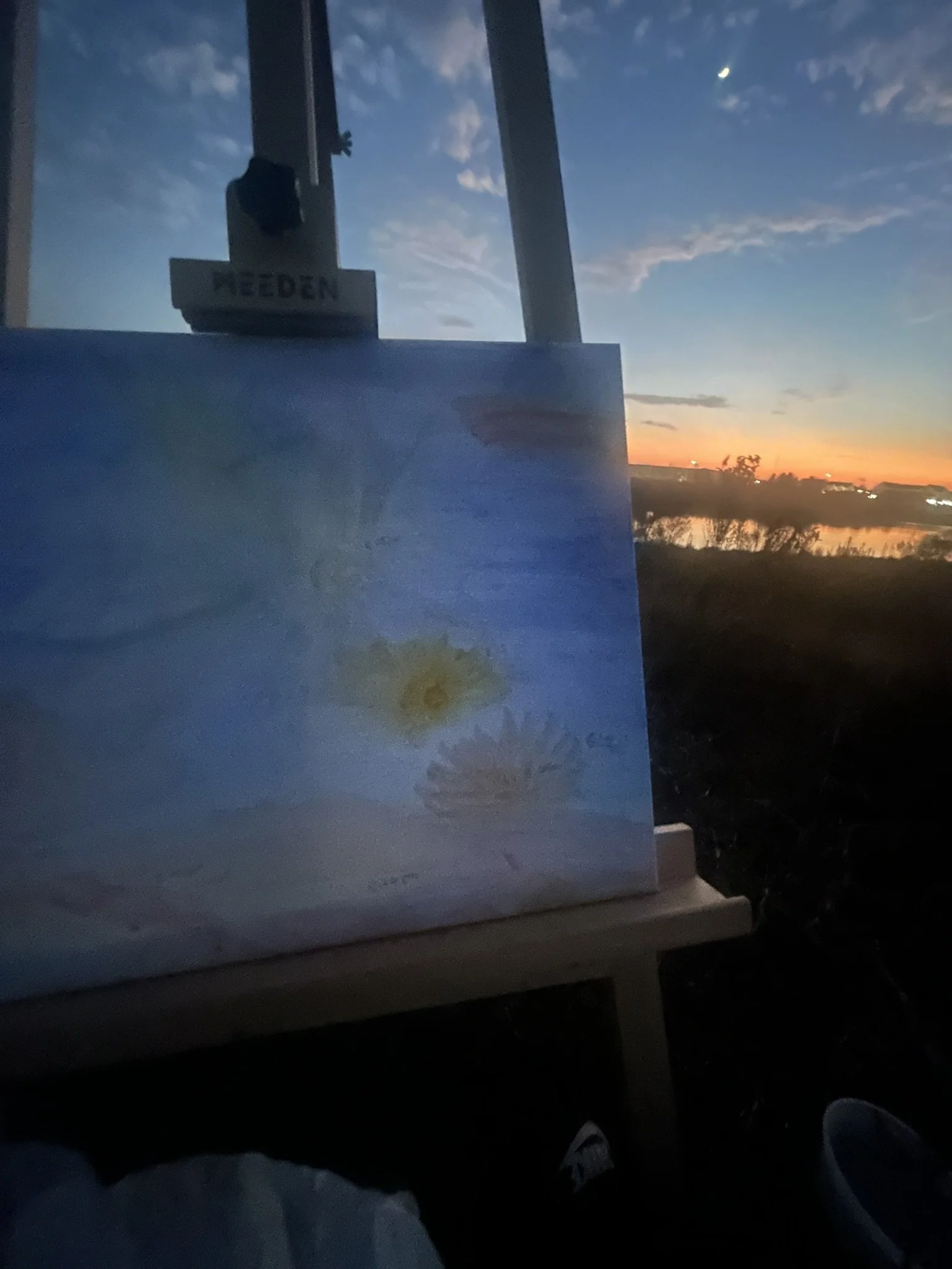 I painted The sunset to dusk in rel time using watercolor. I knew colors changed fast, but it was mesmerizing seeing in real time, in real life, in person the changes in the sky, the clouds, and the sun itself. Being around nature, no headphones, and taking it all in was a refreshing experience and I learned a lot more about myself. I challenge anyone to Paint outside during sunset and see if you feel different.